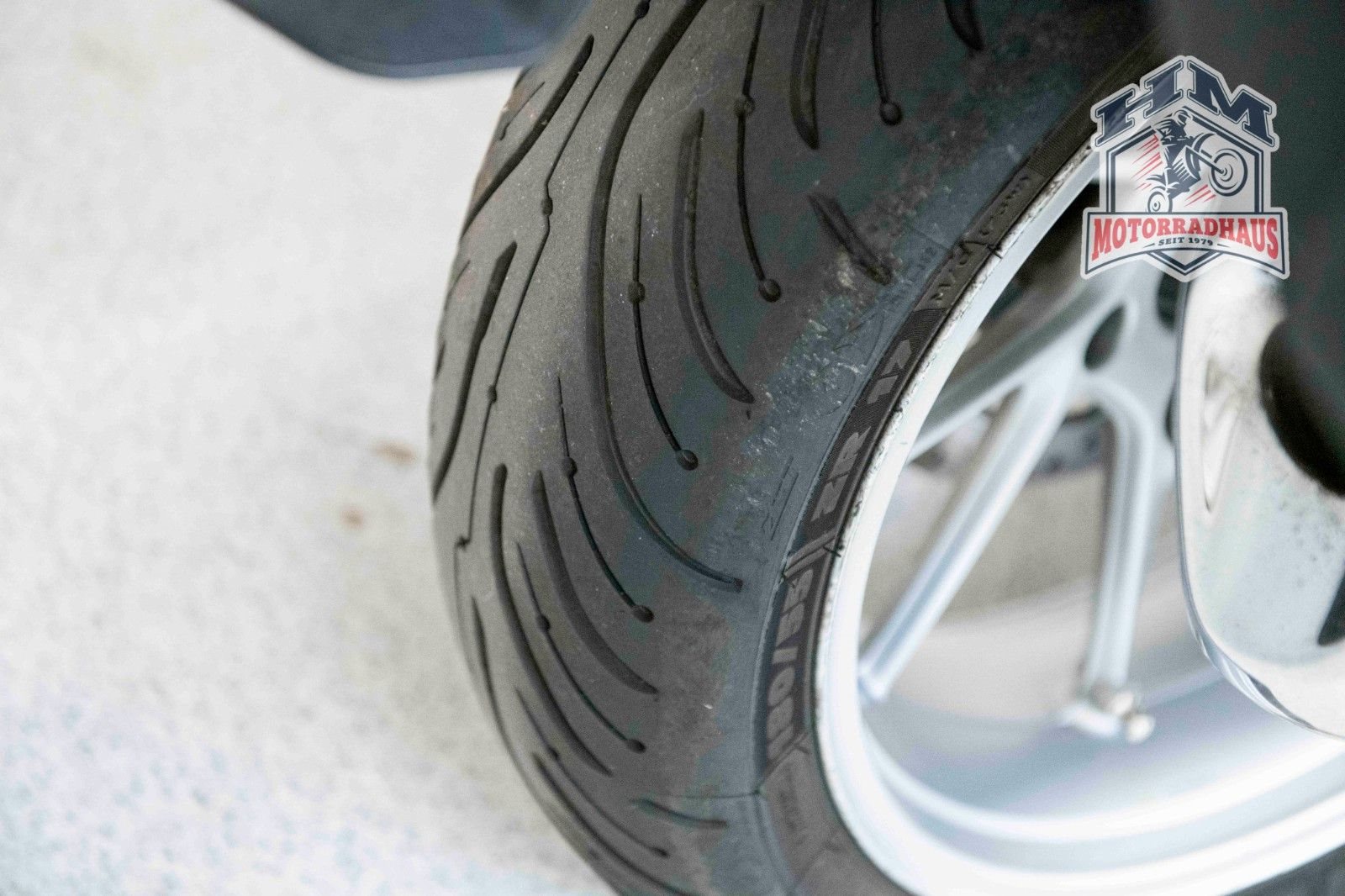 Das Motorrad hat ein paar Kratzer, da es im Stand umgefallen ist.